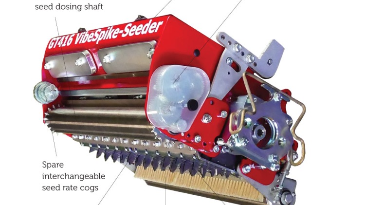 The vibra-spiker creates thousands of clean, open holes while seed is accurately metered at the most economical rate. Seed ducts aligned with the spiking discs enable the rotating spikes to push the seed directly into the soil. The result is excellent germination, and fresh, dense growth on your greens.